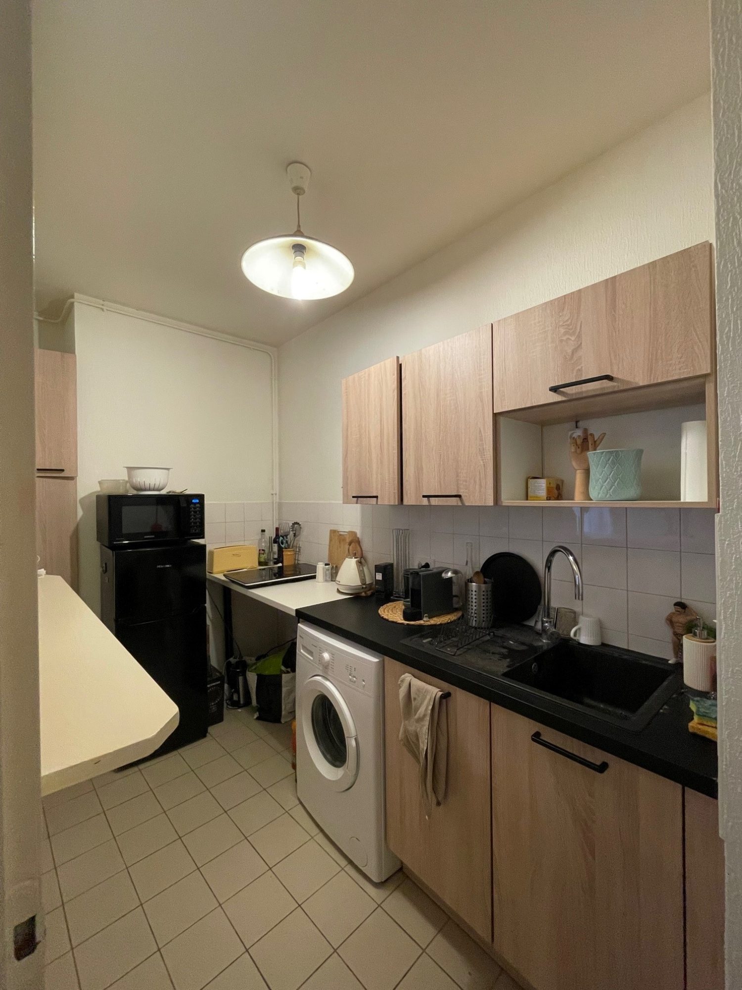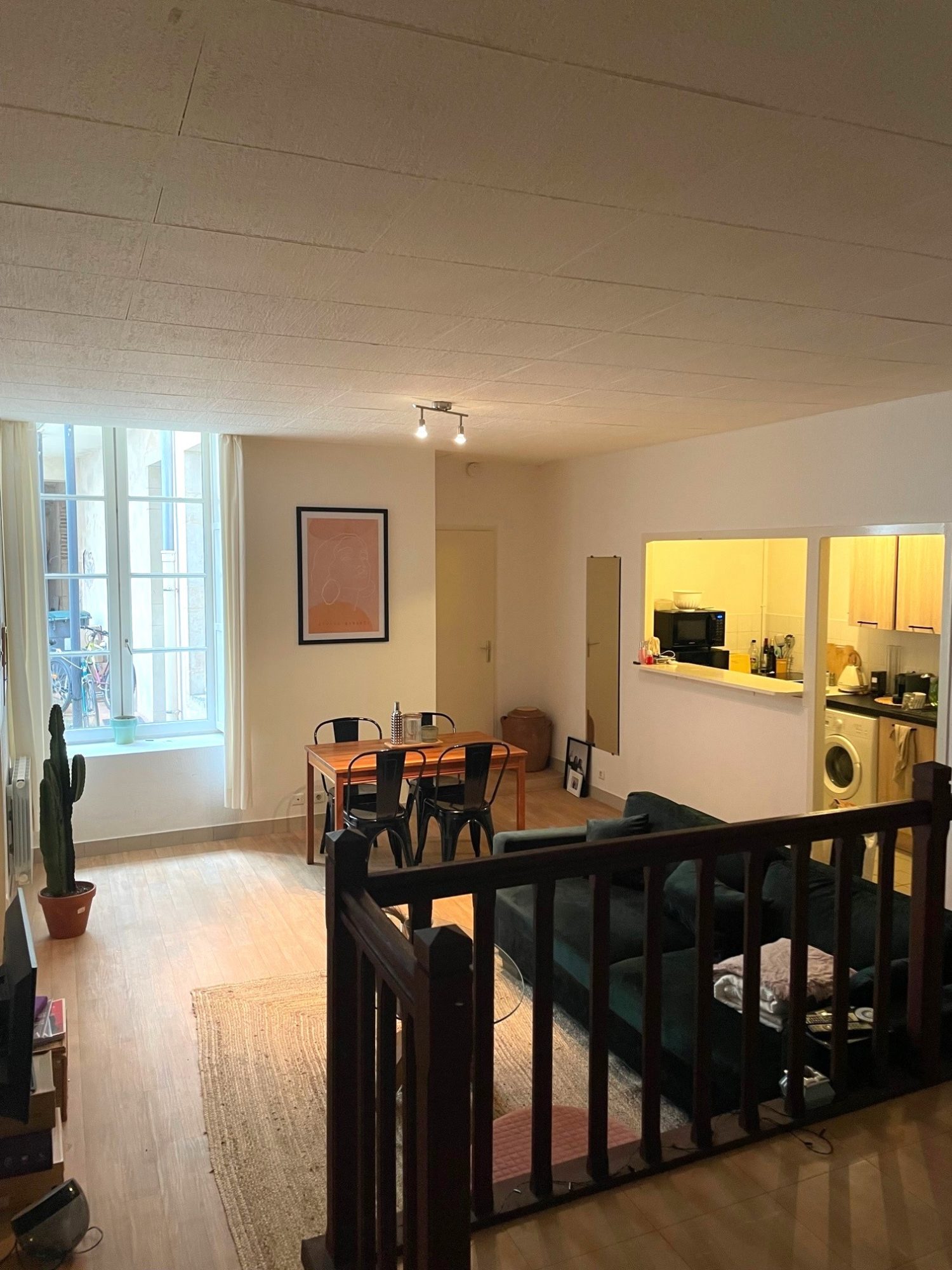 Comprenant séjour avec cuisine aménagée et équipée ouverte, salon en estrade, salle de bains avec WC, une chambre -