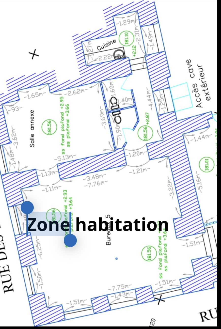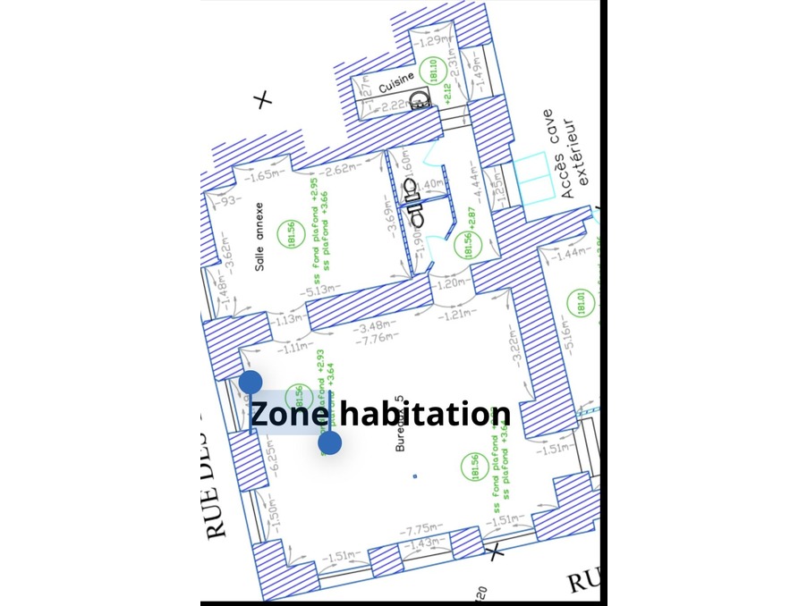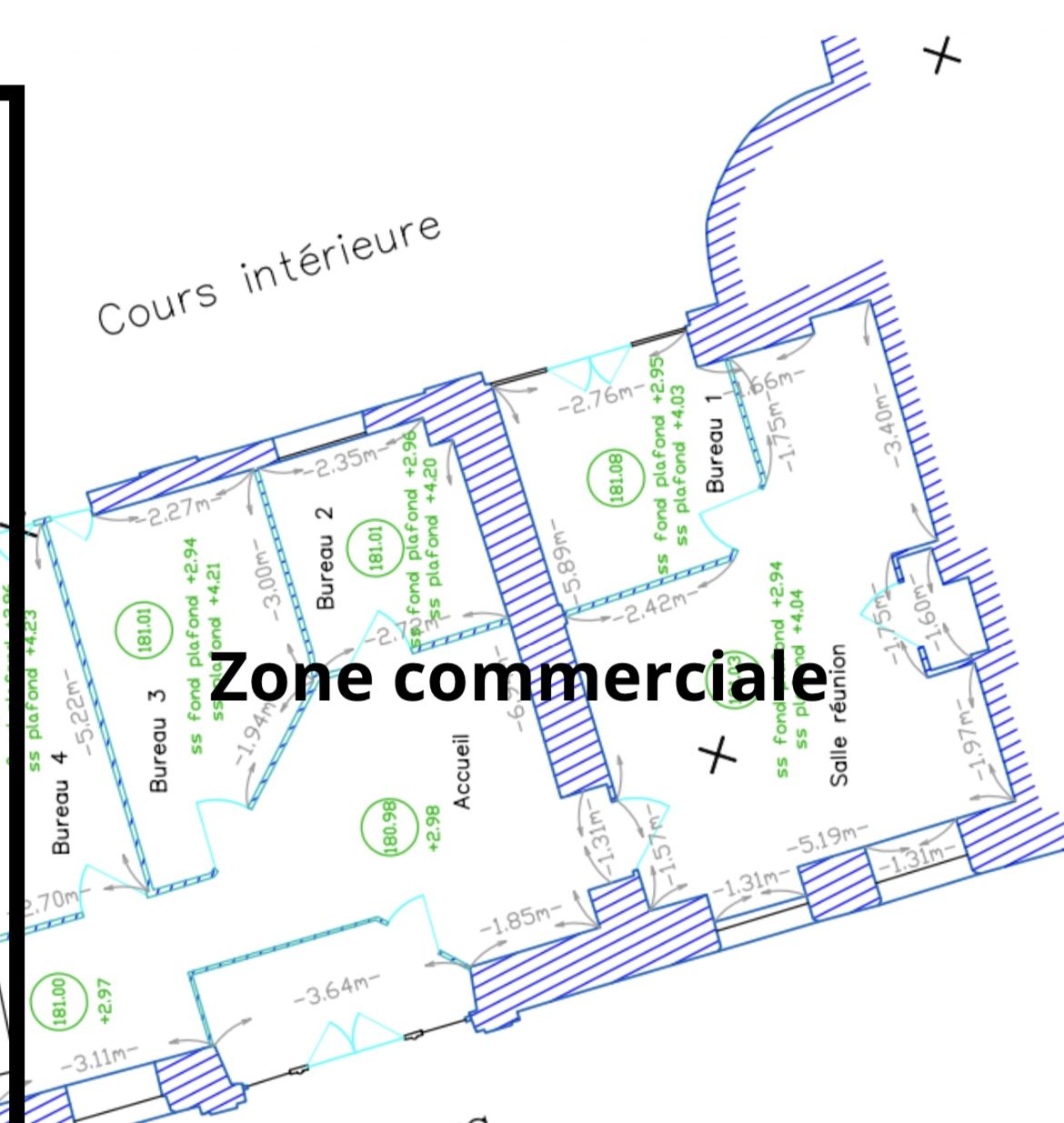 La partie locale commerciale de 97 m², totalement indépendante, comprend cinq bureaux, une entrée avec espace accueil et dégagements. Cet espace est parfaitement adapté à une activité libérale, tertiaire ou administrative, avec la possibilité d’une exploitation immédiate ou d’un réaménagement selon les besoins.