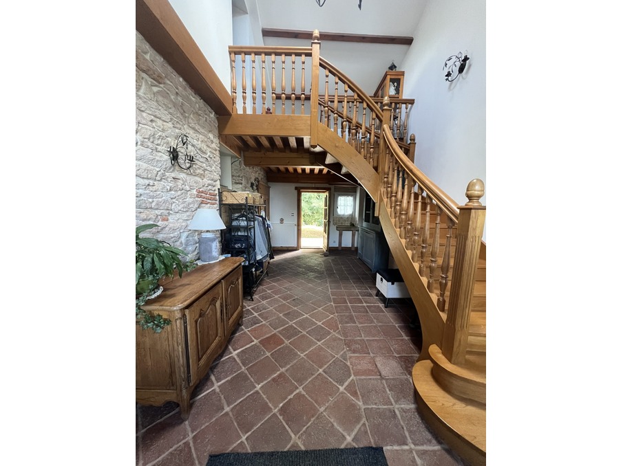 Venez visiter sans tarder cette belle propriété de 292 m2 clé en main sur la jolie commune de Brienne située à 10 min de Tournus, 2 min de Cuisery, 20 min de Sennecey-le-Grand et 30 min de Mâcon et Chalon-sur-Saône. Le rdc est composé : d'une spacieuse entrée avec au sol ses tomettes d'origine, une grande cuisine toute équipée et son double four à gaz/plancha, une salle à manger et ses pierres apparentes, un salon et son parquet en chêne, une grande chambre, une salle de bain et son WC, une grande buanderie, un espace chaufferie, un cellier proche du garage pour un côté pratique. Le 1er étage est muni d'une mezzanine, d'un couloir menant à 5 chambres de belles superficies, d'un bureau, un dressing, d'une salle d'eau avec WC. La possibilité d'agrandir la superficie habitable d'environ 90 m2 est envisageable en continuité du premier niveau ou un plancher est déjà existant. Trois caves voûtées en sous-sol sont présentes, un portillon avec visiophone, deux entrées avec portail dont un automatique menant à un grand garage de 66 m2. La maison est équipée d'un système d'alarme avec caméra, de double vitrage, le mode de chauffage se fait avec une chaudière gaz à condensation récente, un poêle à bois est également présent. Sur un terrain clos et arboré de 3 785 m2, nous retrouvons un puits, 3 terrasses de belles dimensions, un chalet de rangement, un carport pour voitures, de nombreux emplacements parkings. N'hésitez pas à nous contacter pour plus de renseignements sur cette maison de caractère clé en main.